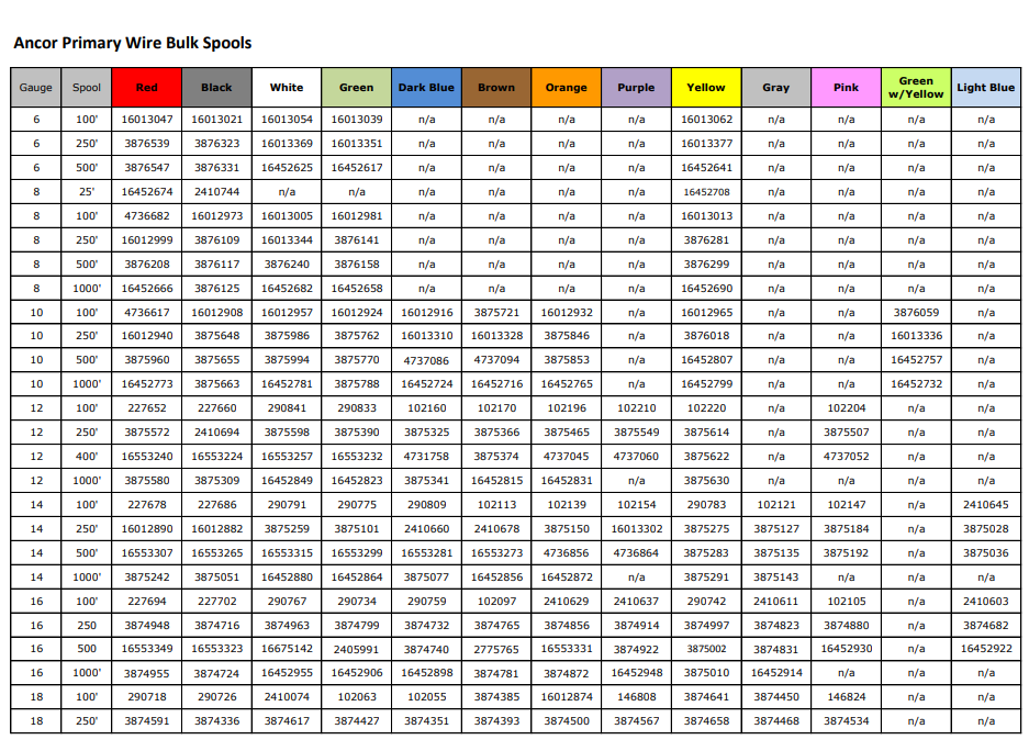 Ancor Primary Wire Bulk Spools