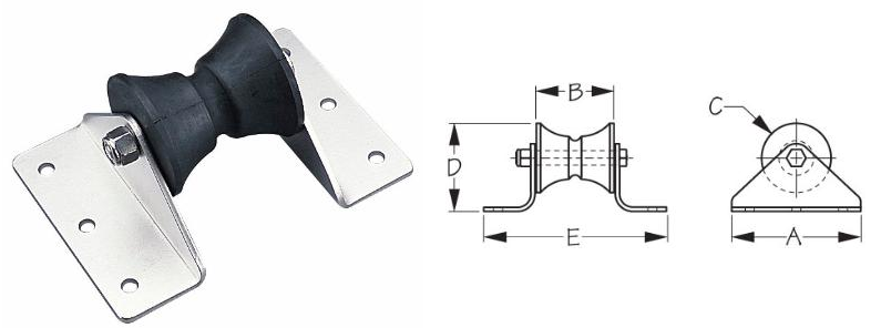 This Large Platform Bow Roller is designed to handle most fluke style anchors and mount in or under the anchor slot of a platform or bow plank. The rubber wheel accommodates rope up to 1-1/2" in diameter. Constructed of corrosion resistant stamped 304 stainless steel. Installs with six 3/8" bolts (not included).